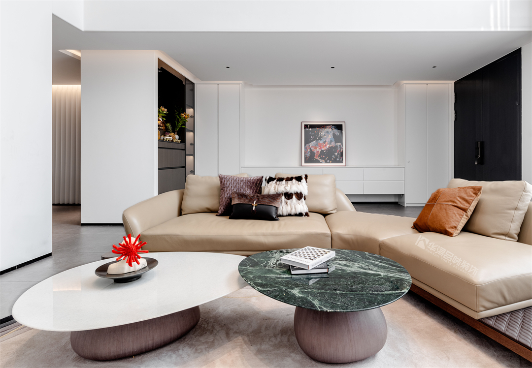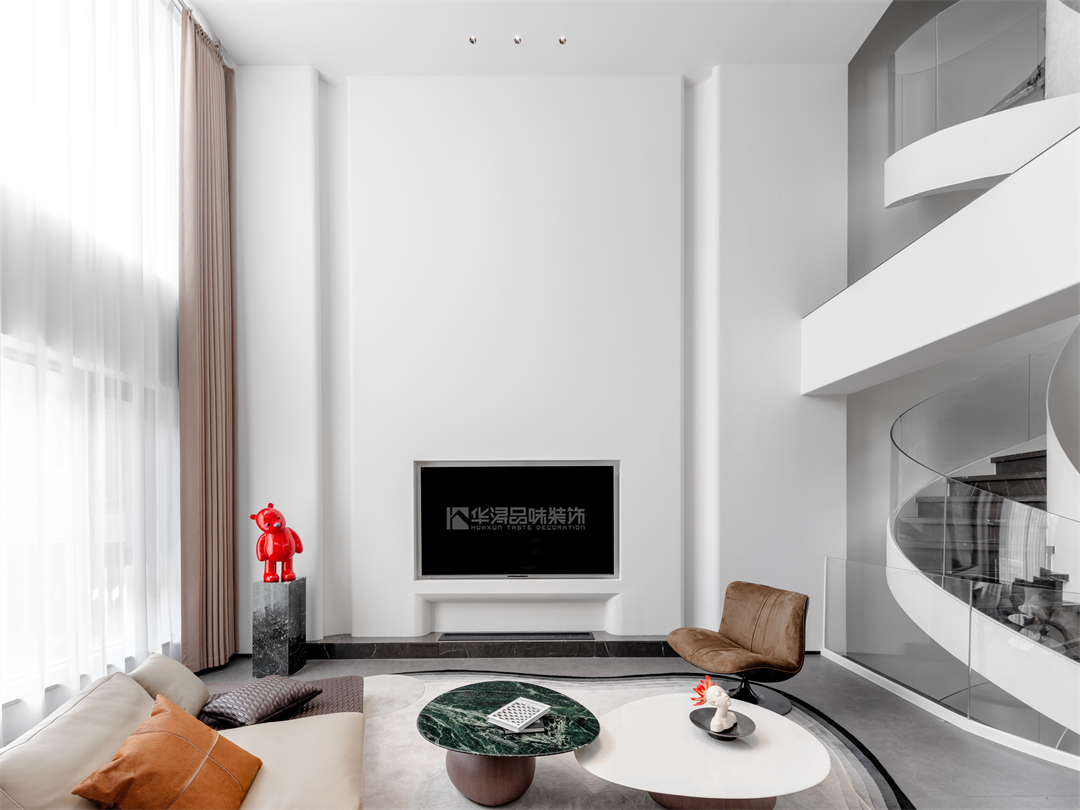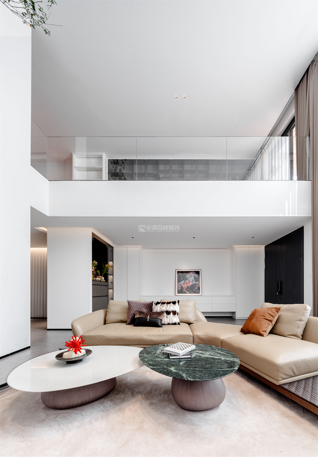 挑高設(shè)計(jì)與大面積落地窗,將戶外的自然光線引入室內(nèi),讓每一天都舒展著暖意,踏實(shí)又安心。大氣通透的格局下,空間以素凈的白色為主色調(diào),身心更覺明朗愉悅。以沙發(fā)為中心進(jìn)行圍合式布局,鋪上地毯加強(qiáng)家的歸屬感,營(yíng)造舒適愜意的家庭生活場(chǎng)景。