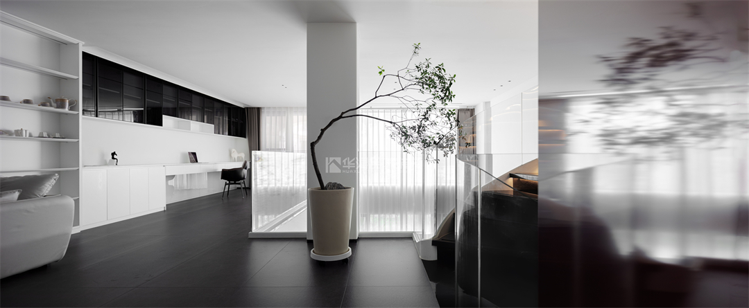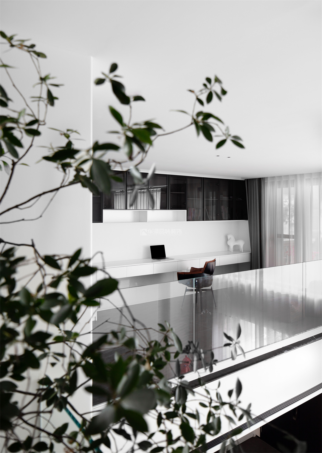 行至二層,角落處的枝條向外輕輕探頭,與樓梯相映成趣。起居廳毗鄰學(xué)習(xí)區(qū),融合了學(xué)習(xí)、休閑功能。始終貫徹現(xiàn)代簡(jiǎn)約的設(shè)計(jì)原則,定制柜體滿足收納需求,少而精的裝飾提升空間格調(diào),將美學(xué)屬性和實(shí)用功能緊密結(jié)合,讓居住者從容把控生活節(jié)奏,自在隨心。